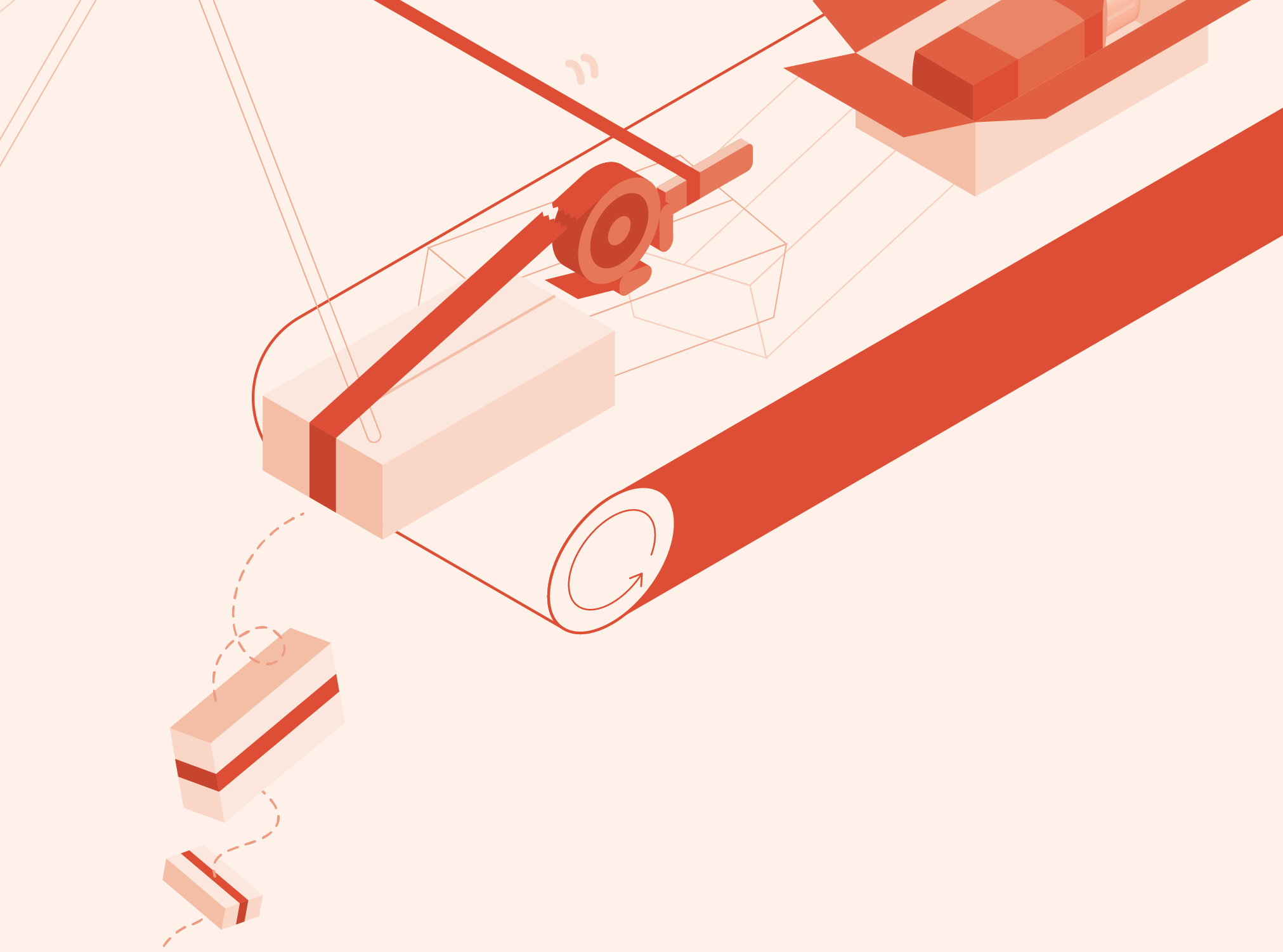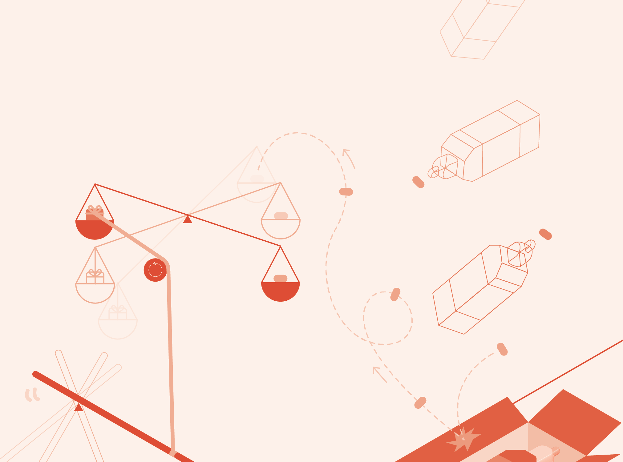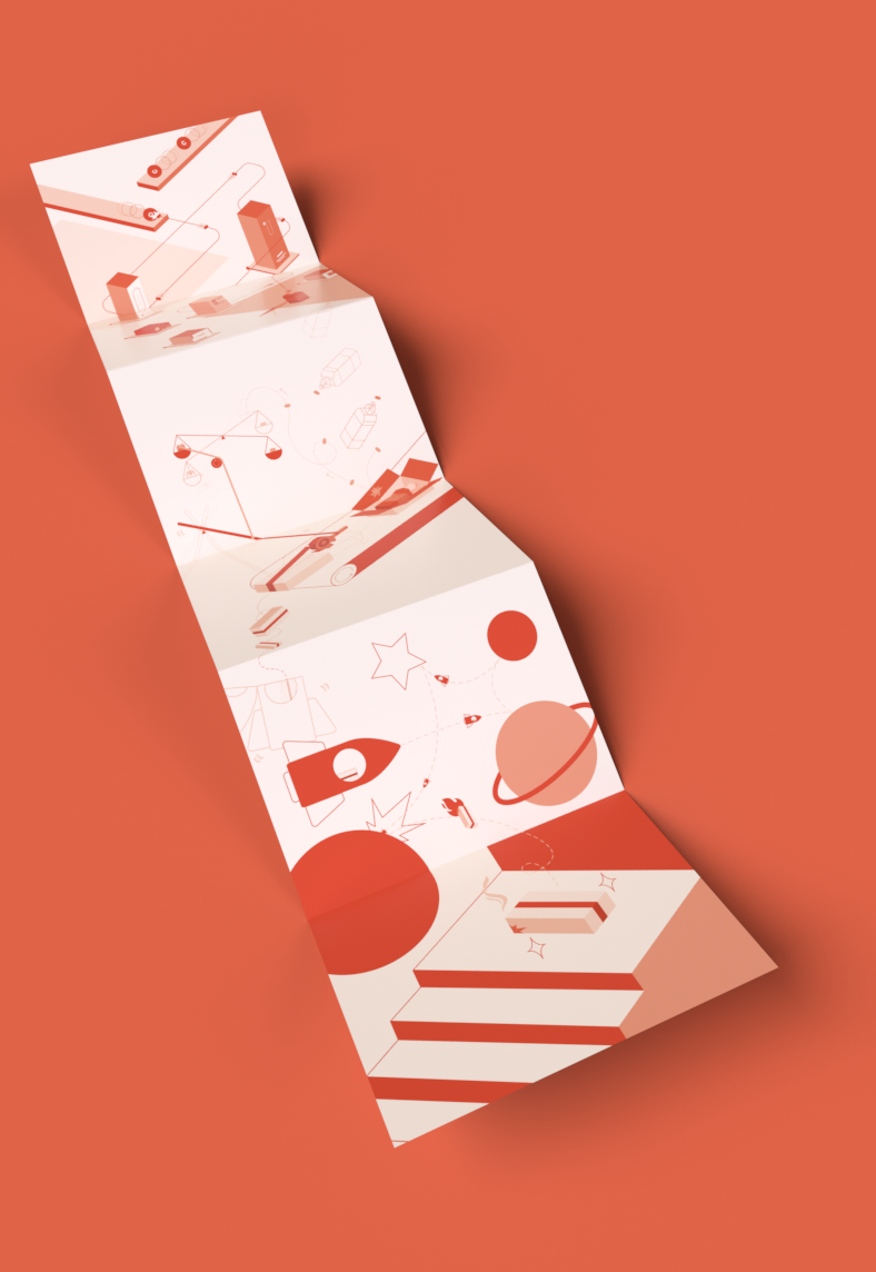 A zine illustrating how a makeup purchase goes from transaction to delivered package. A Rube Goldberg approach inspired by my own Black Friday skincare shopping.